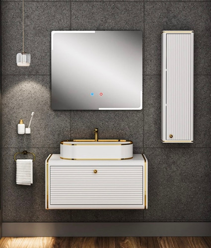 کابینت روشویی لوکس کابین کد 613Aسفید طلایی فول ست جهت اطلاع از درصد تخفیف تماس بگیرید