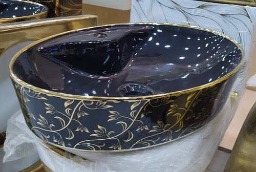 توالت ایرانی و رویه کابینتی بیضی مشکی طلایی کد۱۱۸