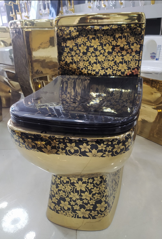 توالت فرنگی مشکی طلایی لوکس کد ۱۰۸