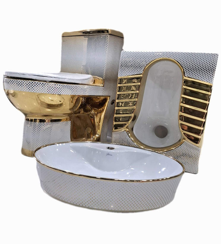 توالت فرنگی و ایرانی و رویه کابینتی لوکس سفید طلایی کد۱۰۶