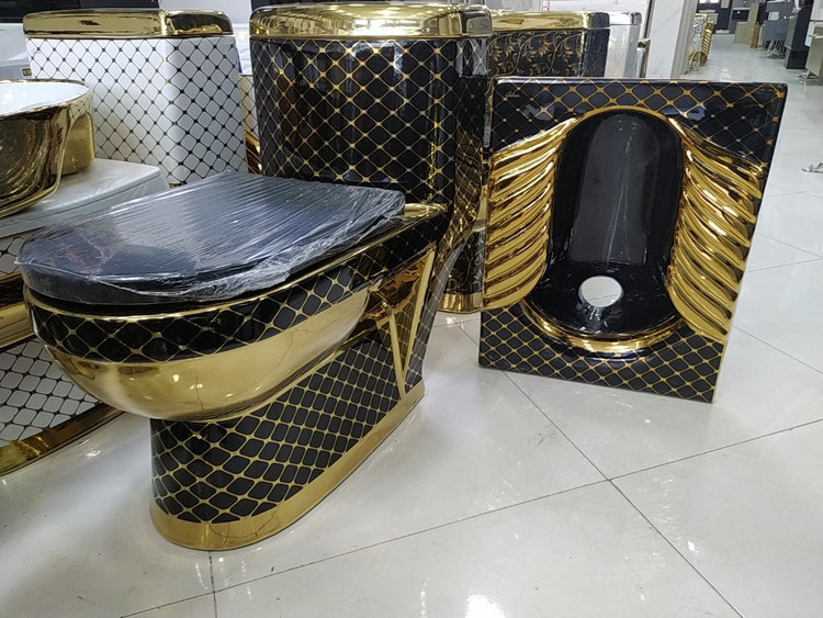ست توالت فرنگی و ایرانی لوکس مشکی طلایی کد ۱۱۹