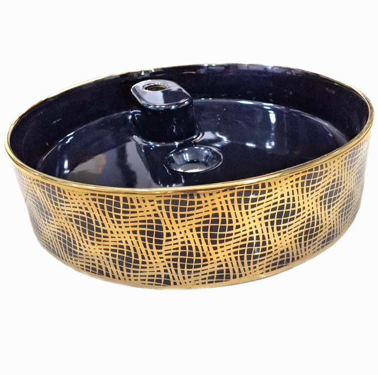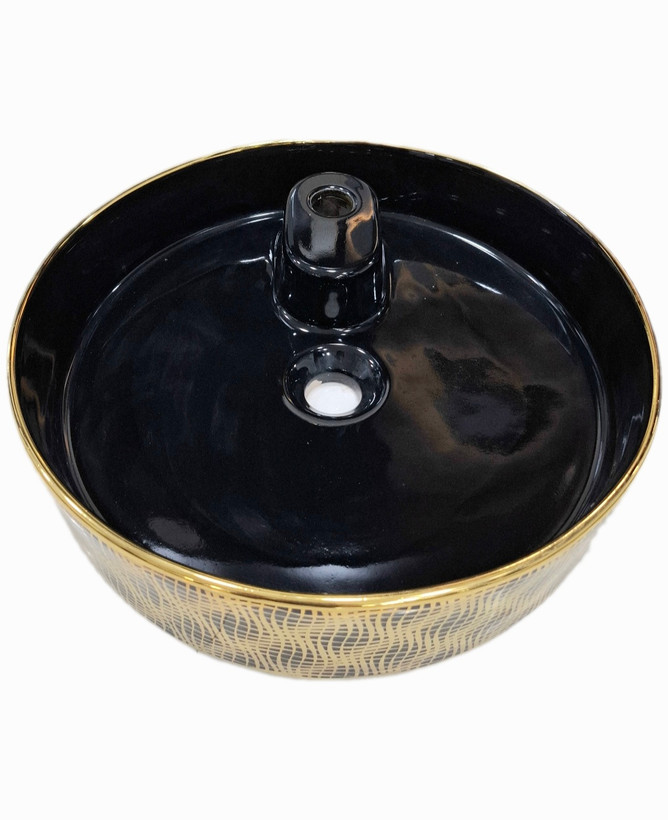 رویه کابینتی مشکی طلایی گرد کد۱۰۹ قطر۴۵سانت لعاب آبکاری کوره ای مناسب برای رویه کابینتی