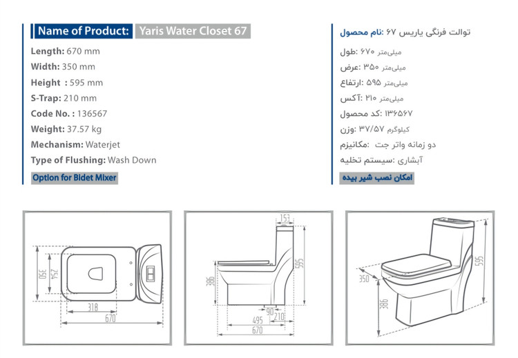 توالت فرنگی یاریس ۶۷ :نام محصول