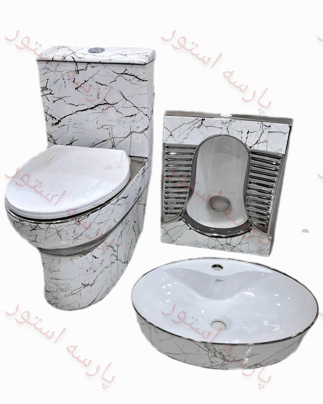 ست توالت فرنگی توالت ایرانی و رویه کابینتی سفید نقره ای کد118