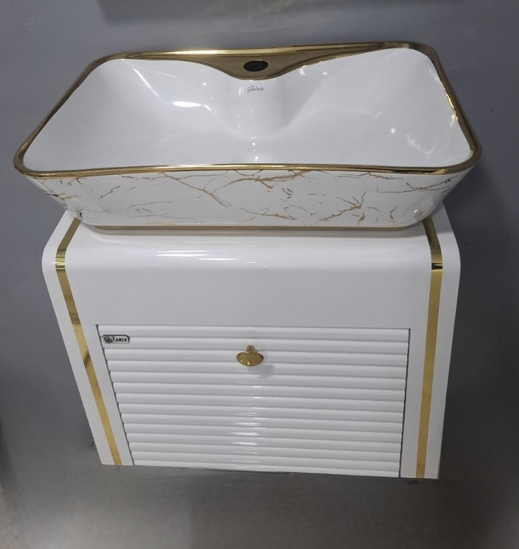 روشویی کابینتی کد۱۱۰ ابعاد ۵۰در۳۵ فول ست همراه با اینه و باکس و رویه کوتینگ بدنه کامل پی وی سی رنگ ۲۱ ضد آب