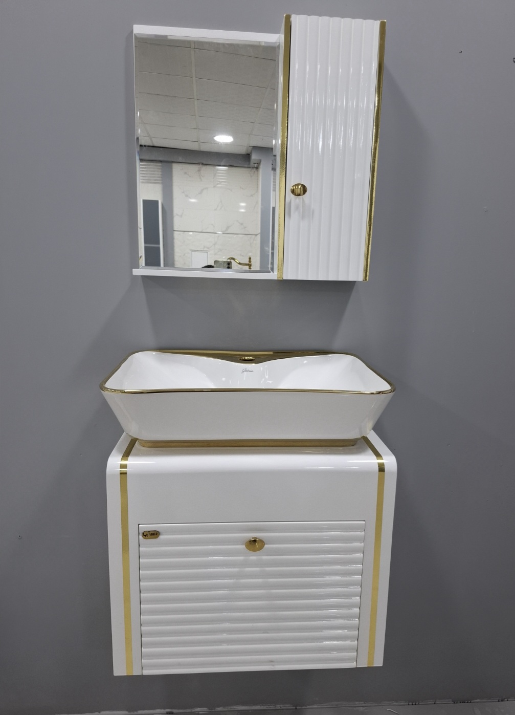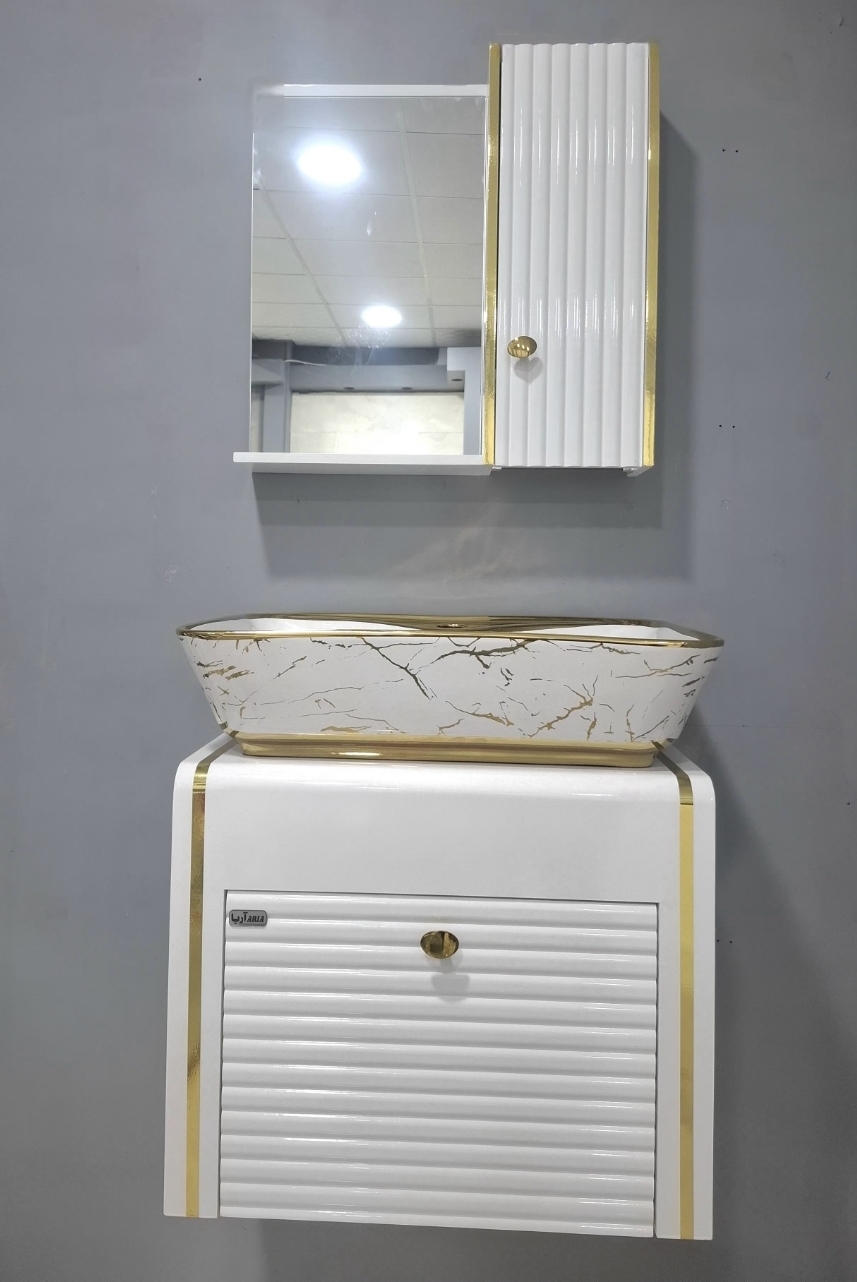 روشویی کابینتی کد۱۱۰ ابعاد ۵۰در۳۵ فول ست همراه با اینه و باکس و رویه کوتینگ بدنه کامل پی وی سی رنگ ۲۱ ضد آب