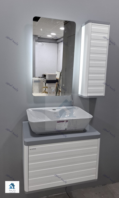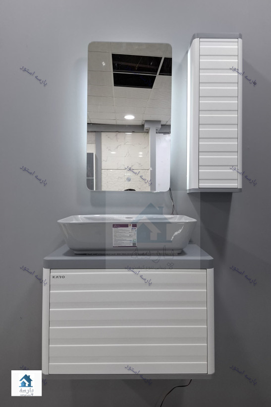روشویی کابینتی مدلPسفید طوسی فول ست اینه تاچ بک لایت