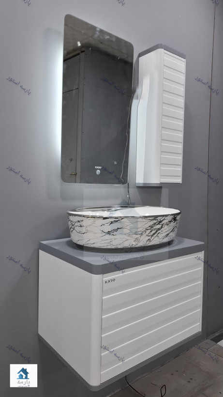 روشویی کابینتی مدلP رویه بیضی سفید نقره ای ماربل فول ست