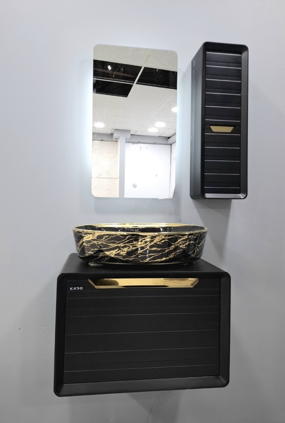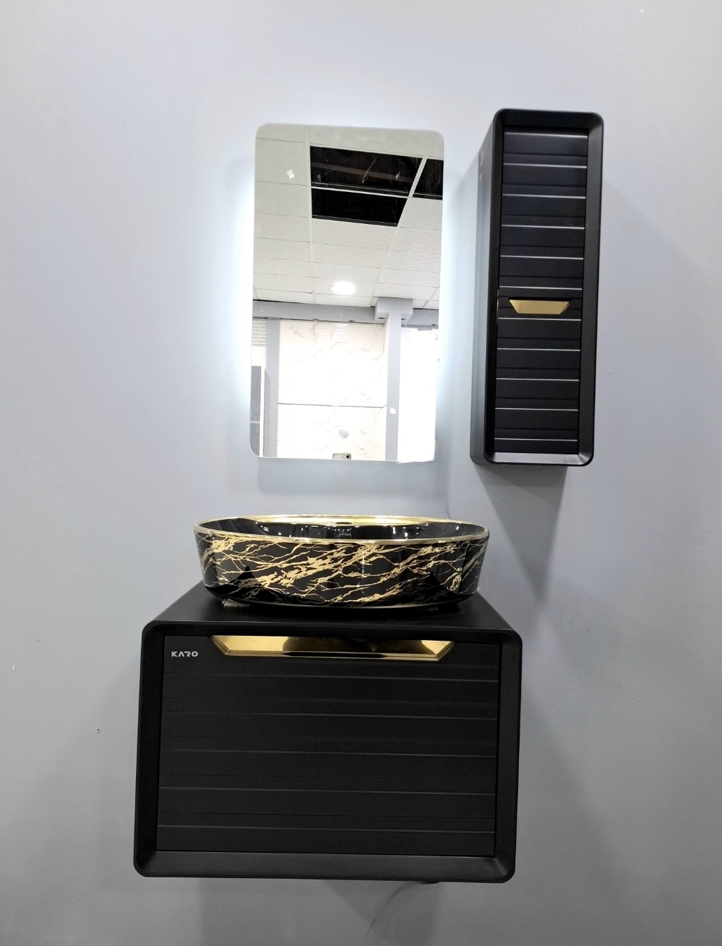 روشویی کابینتی مدلSمشکی طلایی فول ست اینه بک لایت