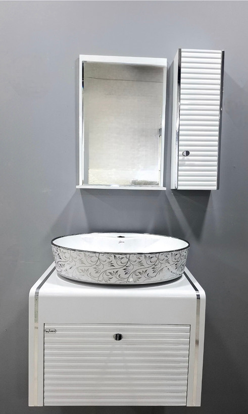 روشویی کابینتی بامبو سفید نقره ای فول ست