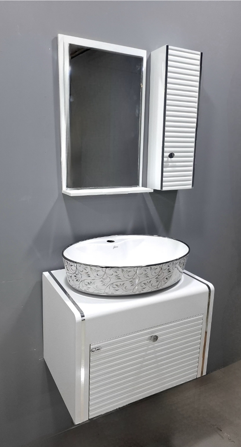 روشویی کابینتی بامبو سفید نقره ای فول ست
