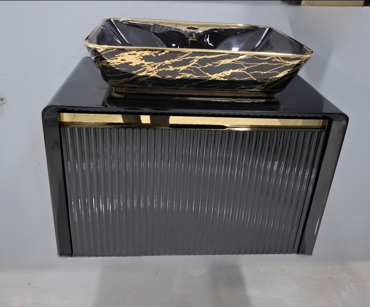 روشویی کابینتی لوکس مشکی طلایی فول ست ابعاد 80در40