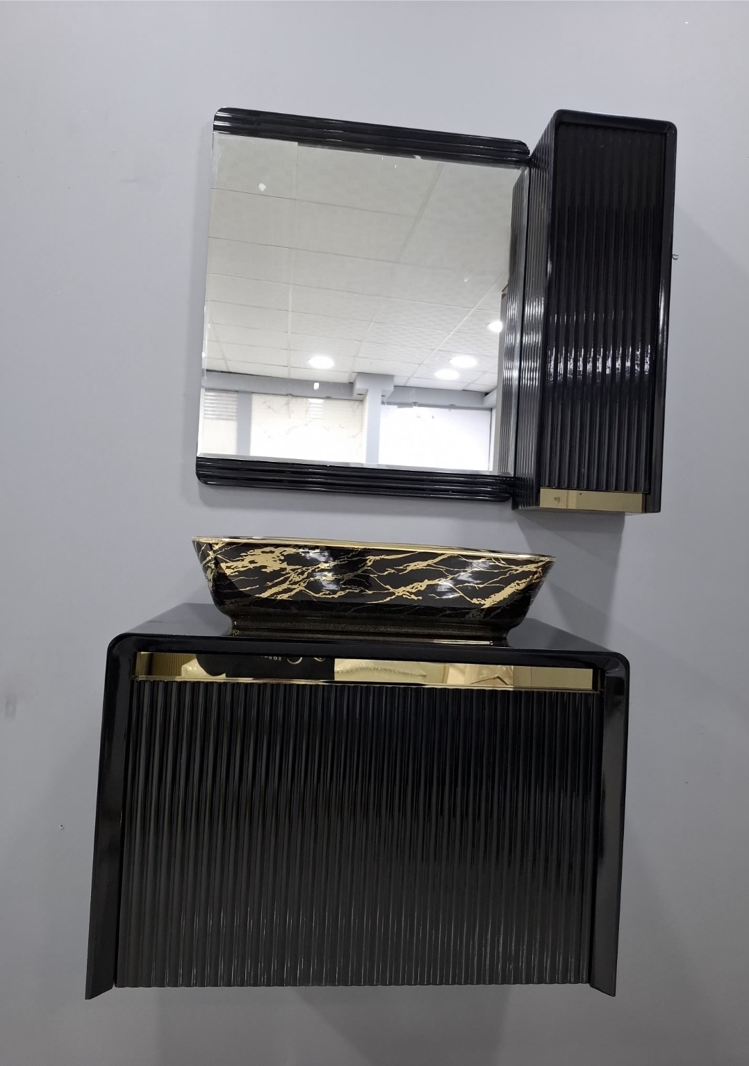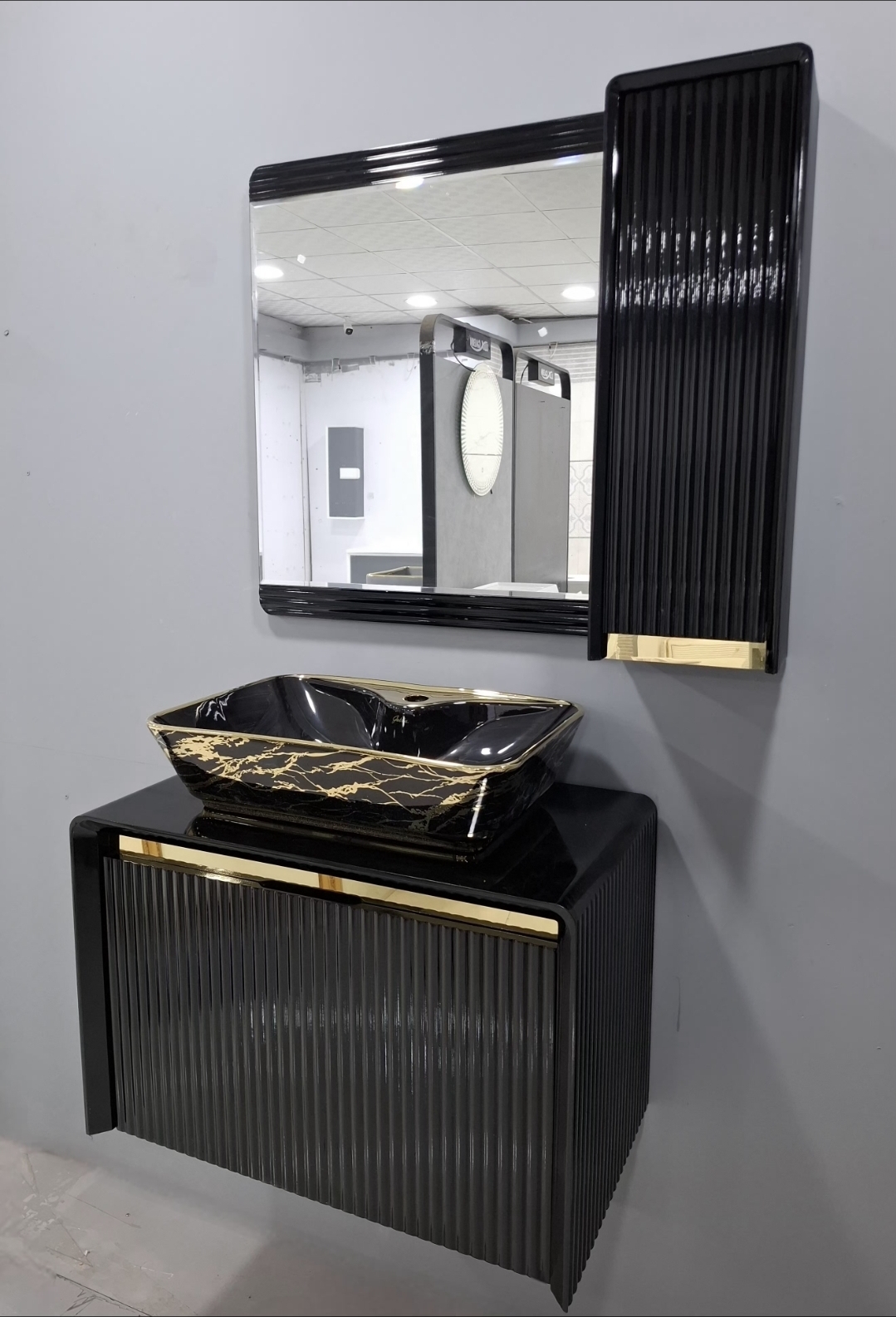روشویی کابینتی لوکس مشکی طلایی فول ست ابعاد 80در40