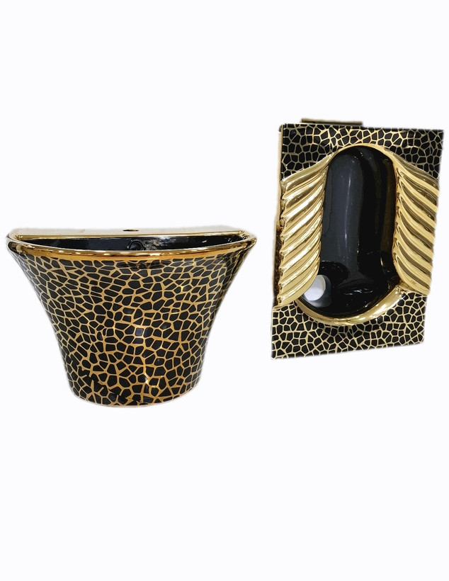 توالت ایرانی و روشویی نيم پایه مشکی طلایی لوکس کد122