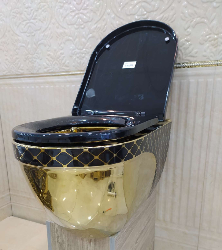 فرنگی وال هنگ مشکی طلایی کد۱۱۹خروجی تخلیه ده سانت قابل نصب شیر خود شور(بیده دار)