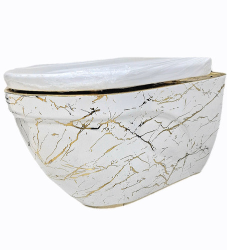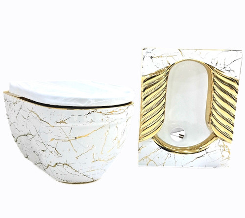 توالت فرنگی کد۱۱۸ سفید طلایی ماربل