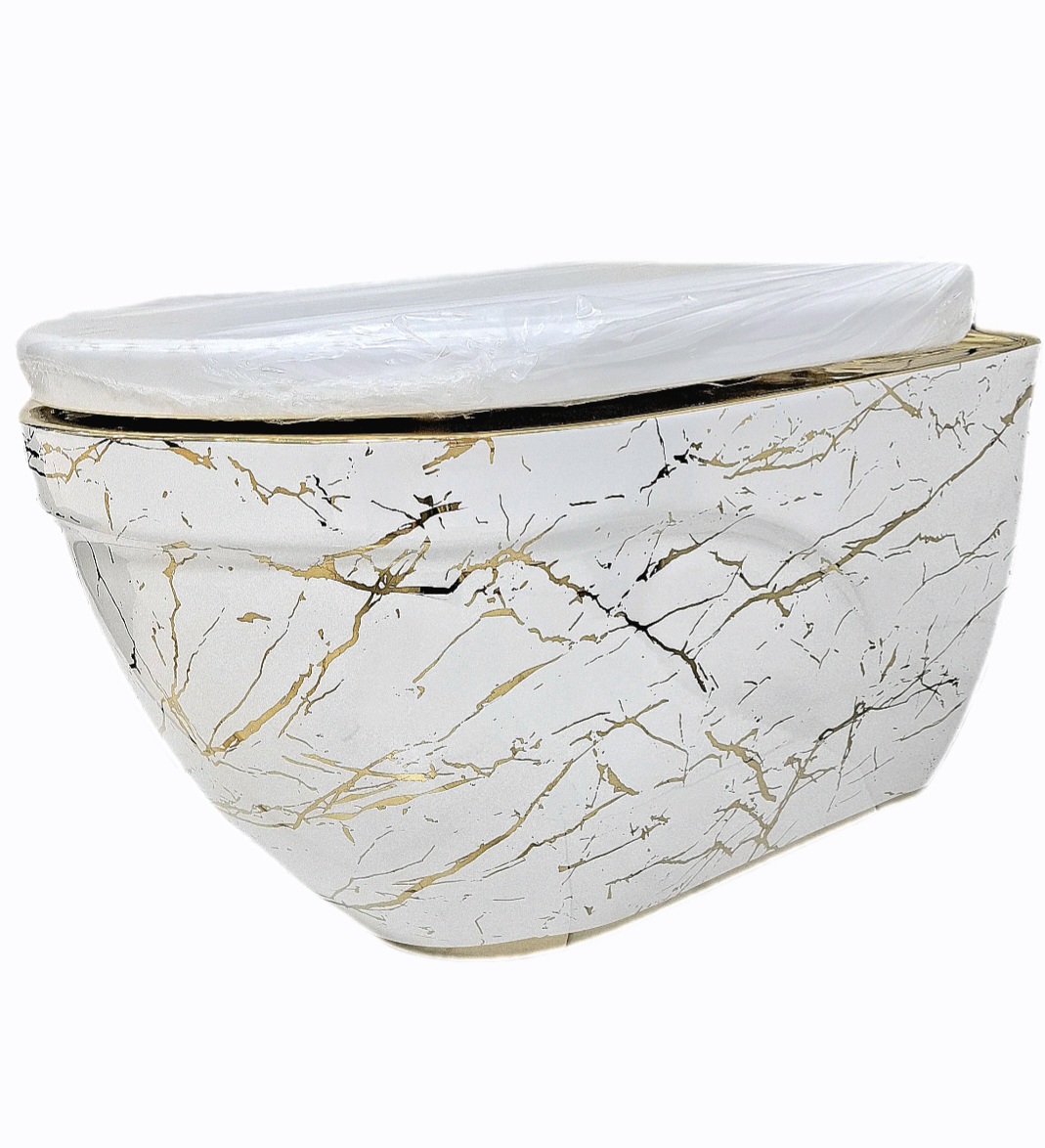 توالت فرنگی کد۱۱۸ سفید طلایی ماربل